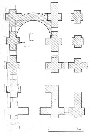 113) Разумеется, было бы заманчивым считать северо-западный придел крещальней, именно потому посвященной Иоанну Предтече еще в середине XI в. Однако необычная для крещальни вытянутая форма, большие размеры, а также результаты историко-архитектурных исследований, изложенные выше, дают основание для сказанного.