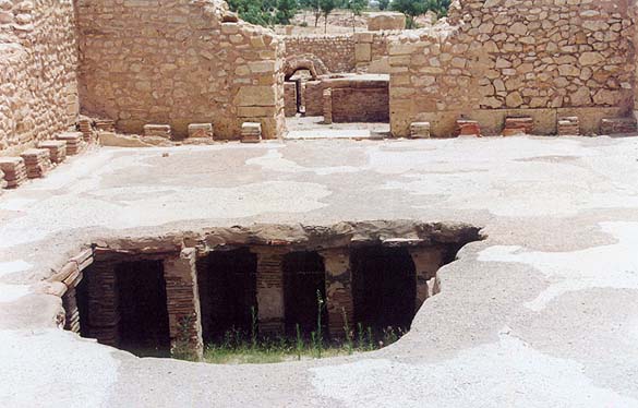 Городские термы. В проломе видны небольшие колонны. Пол в залах терм был двойным. Внизу циркулировал теплый воздух, который и обогревал залы